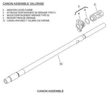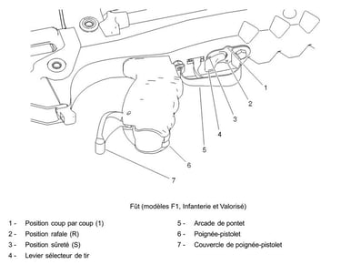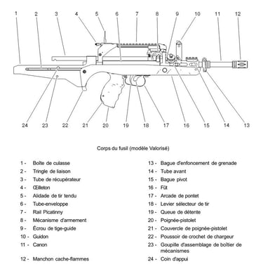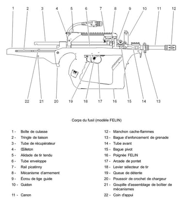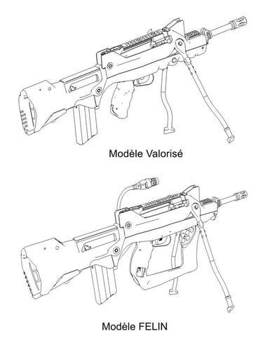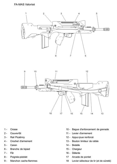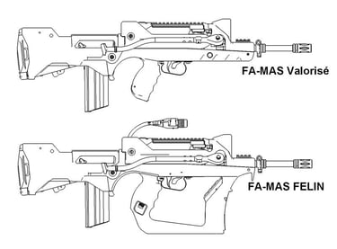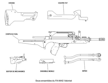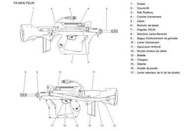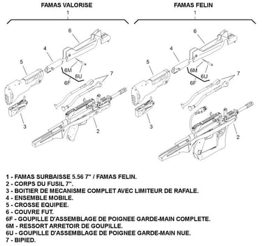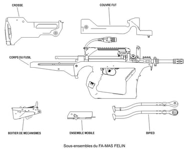 Les différentes vues éclatées du Famas Valorisé et FELIN