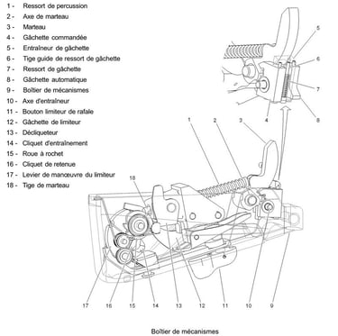 Boitier de mécanismes / Limiteur de rafale à 3 munitions.