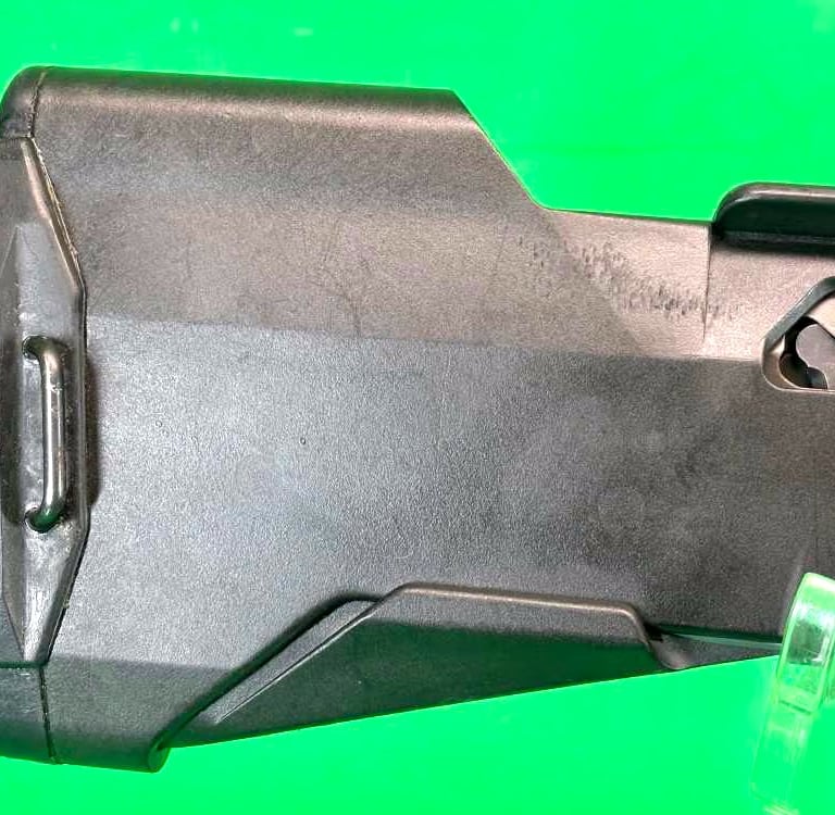 Les parties polymère ne s'usent pas comme les parties résine, c'est teinté dans la masse. Les coups et les griffes sont possibles mais n'entame en rien l'aspect noir mat. La surface présente un aspect sablé assez typique des plastiques polymères comme dans l'armement moderne.