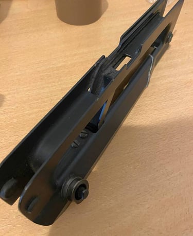 Sur cette variante, les noix de bipied n'ont pas le "téton" de fixation de la sangle TTA. Vu qu'il y a un passant de sangle sur la PGM, ce "téton" de fixation de sangle serait un doublon inutil: