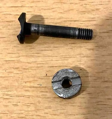 Le fameux boulon (vis + écrou = boulon) qui remplace la goupille: