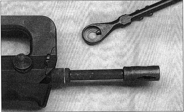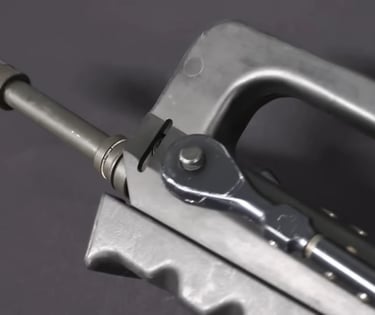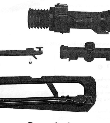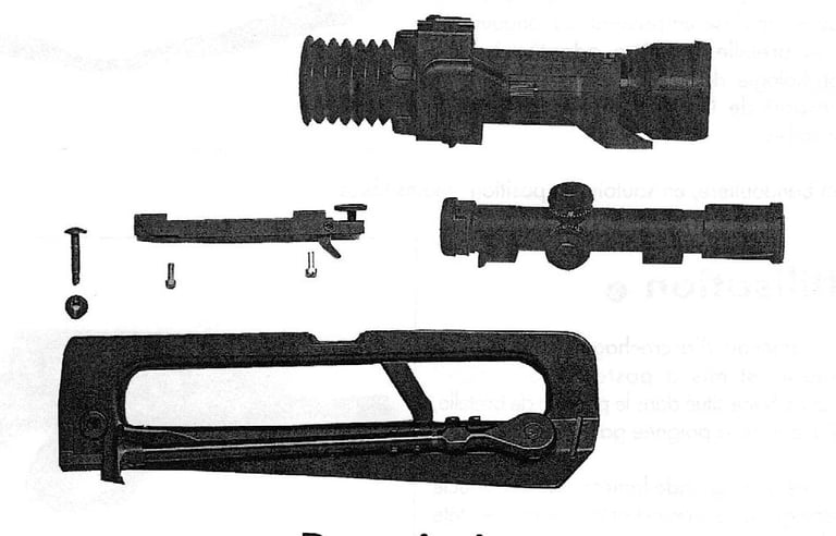 Ce modèle possède un étrier sous la zone d'insertion de l'écrou de tige-guide qui englobera l'avant du tube-enveloppe. Surement pour renforcer encore la stabilité des optiques: