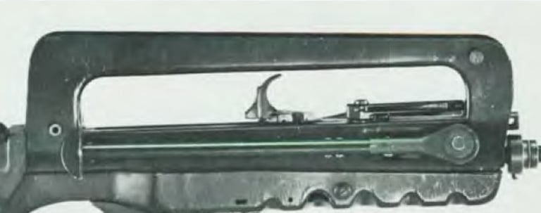 Le renfoncement pour le pouce disparait. A la place on a un renfoncement pour que les rivets de la branche de bipied ne cognent pas sur la PGM.