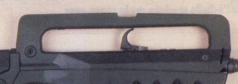 La PGM possède un renfoncement pour mieux positionner le pouce lors de la prise en main du Famas.