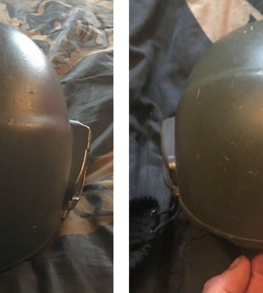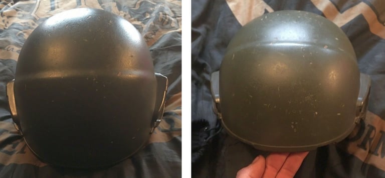 Le front présente une sorte de protubérance. Contrairement à ce que certains ont pu croire, ce n'est pas un renfort de protection (avant plus épais pour une meilleur protection), juste une manière de mieux dégager le front parait-il. En tout cas, le front est aussi plus plat, moins arrondi. Çà permet à la griffe de casque (pour JVN) d'être moins oblique/ plus verticale.