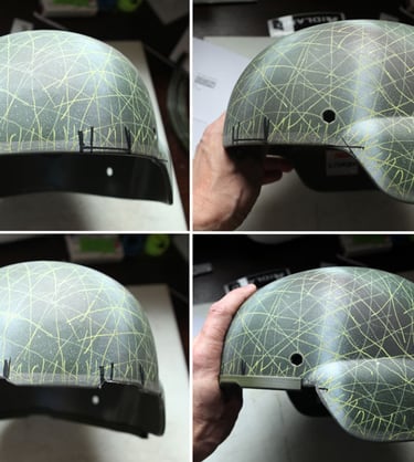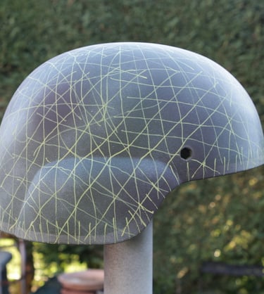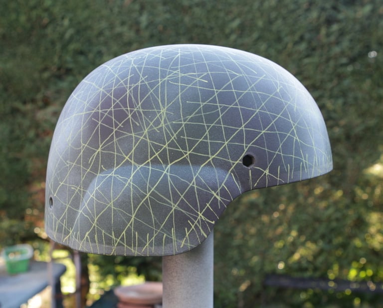D'abord, le casque est désossé histoire de ne conserver que la coque pour le scannage. Et une fois la coque nue, j'ai ajouté de la "texture" histoire que le logiciel comprenne bien la forme par photogrammétrie etc...
