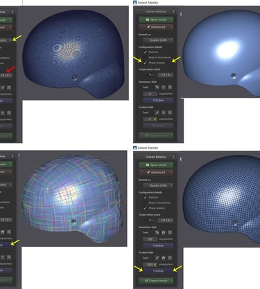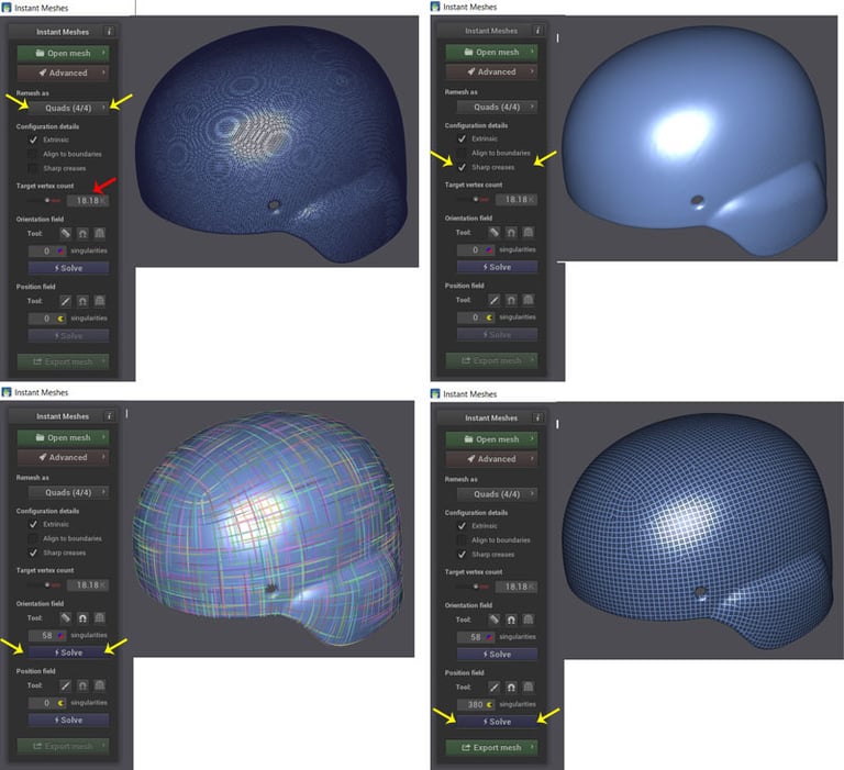 On clique sur le 1er "solve", il fait apparaitre comme des traits de peinture, ça indique le sens des quadmesh qu'il va généré.