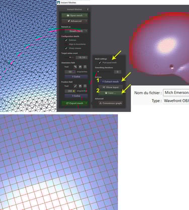Puis on clique "extract mesh" et enfin on sauvegarde ("save").
