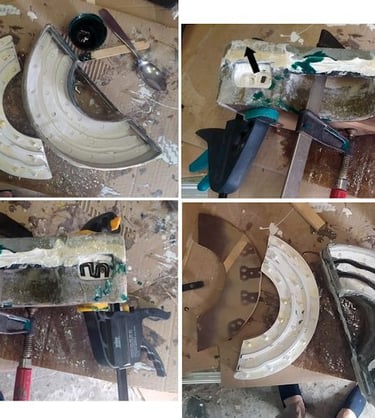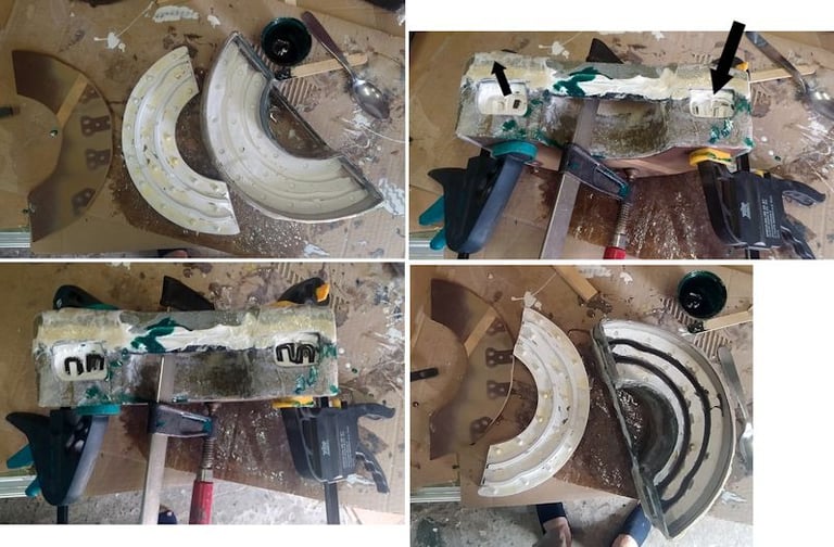 Je change e stratégie. Je rebouche les 3 évents d'origine et je creuse des saignées sur l'arrière de l'élastomère.