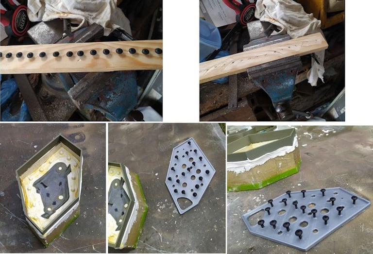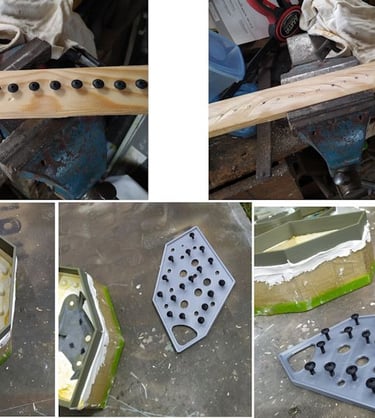 j'en profite d'ailleurs pour créer des ouverture pour que les saignées soient débouchantes et que je puisse couler la résine de tirage des plaquettes.