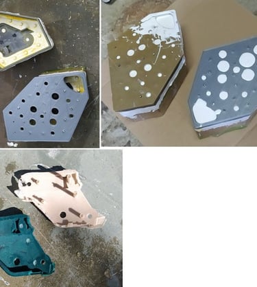 Et là je fait mon 1er tirage. Si vous regarder bien c'est un échec. Il manque la partie qui recouvre la tranche du casque. Tout le dégazage se fait dans ces zones.