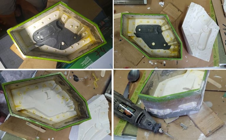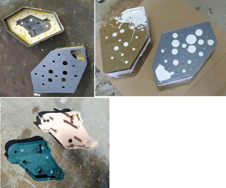 Et ici on peut voir le moule en 2 parties réalisé en élastomère de silicone.