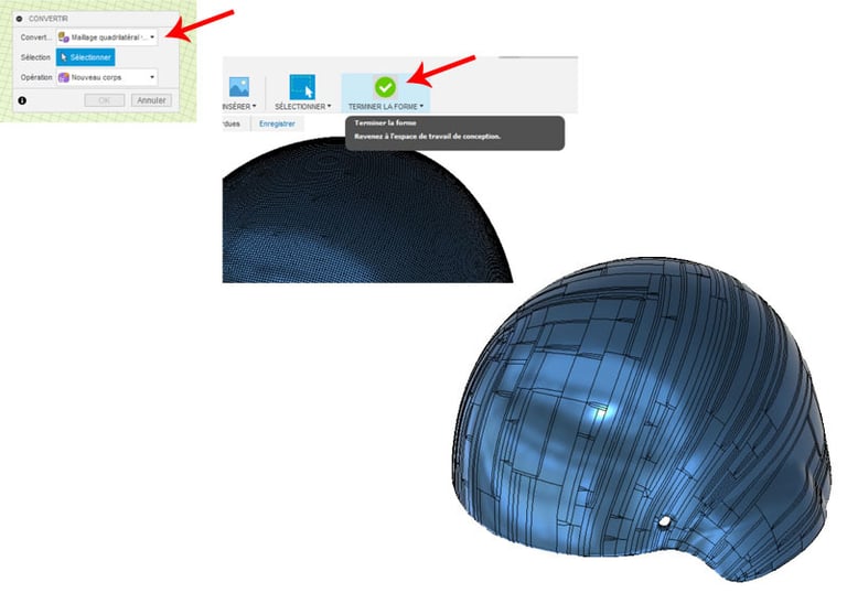 A quoi ça sert de convertir en maillage quadmesh? Pour que Fusion360 puisse le convertir en solide. Sinon cela reste un maillage avec toutes les limites que cela implique.