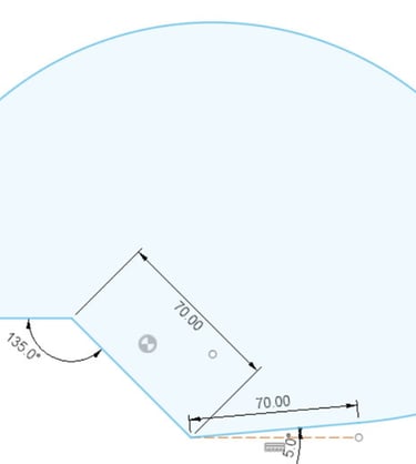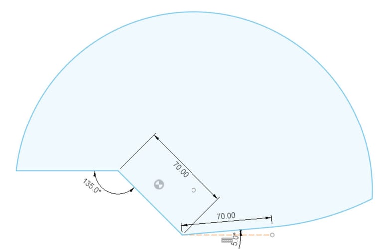 J'ai relevé des trucs approximatifs sur le vrai. L'angle à 135°, c'était pas évident à mesurer mais je ne doit pas être loin de la vérité. Les 7cm de longueur d'oreille, pareil et les 7cm de plat vers l'arrière aussi. Le plat à l'arrière se relève légèrement, j'ai arrondi à 5° au pif.
