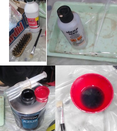 Pour travailler la résine, histoire de ne pas utiliser un pinceau par coulée, je nettoie le pinceau à l'acétone à la fin et je le brosse à la brosse de fer au début, histoire de lui redonner de la souplesse. Ça permet d'utiliser plusieurs fois le même pinceau.