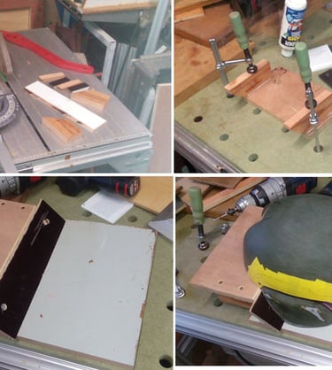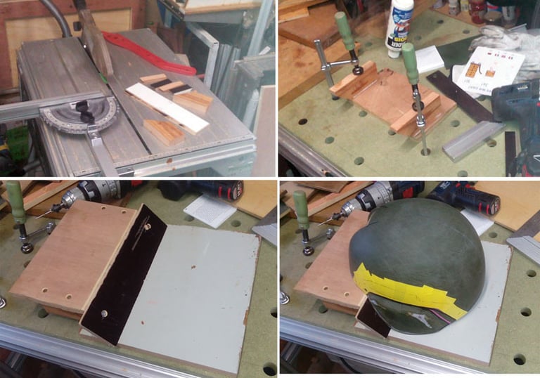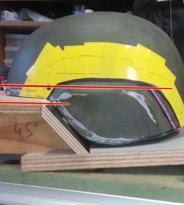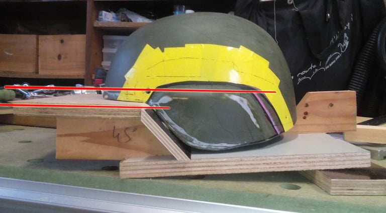 Pour que les bords et les zones bien horizontales du casque soit "parfaite", je vais m'aider d'un support en bois.