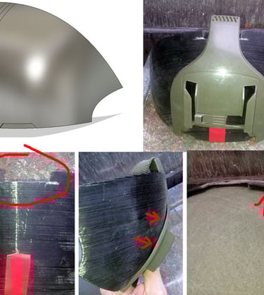 Partir d'un truc imprimé en 3D sera plus symétrique et harmonieux que si je fais ça à la main levé directement sur le casque. Il me suffira de le coller à l'avant du mich puis de le mastiquer / poncer pour le lissage final.