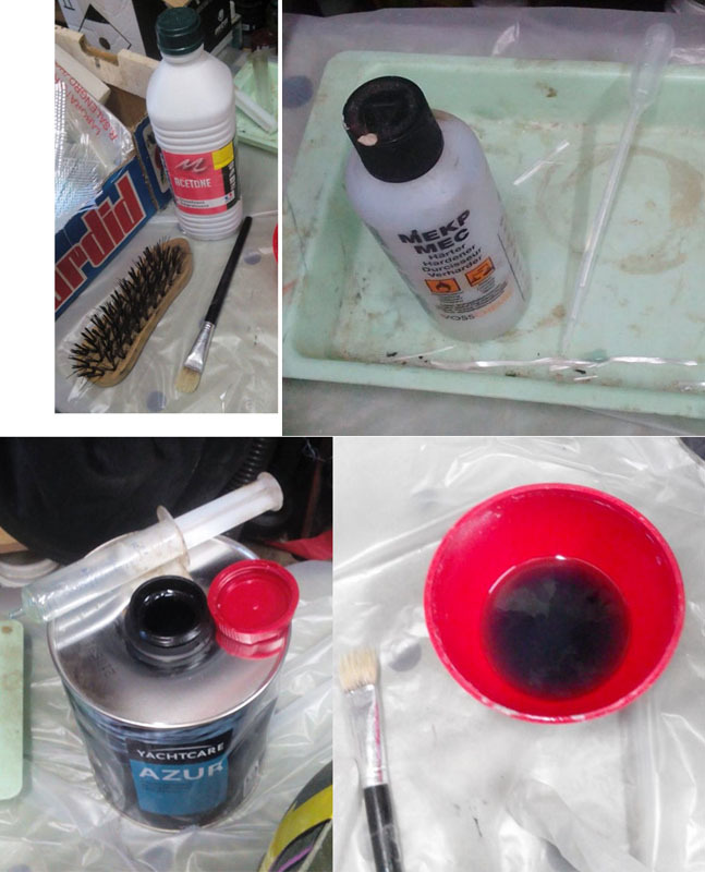 Une fois coupé, je vais mouler un peu de résine+fibre pour combler le trou. Du coup un passage à l'acétone intérieur/extérieur pour dégraisser la zone de travail.