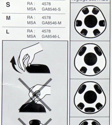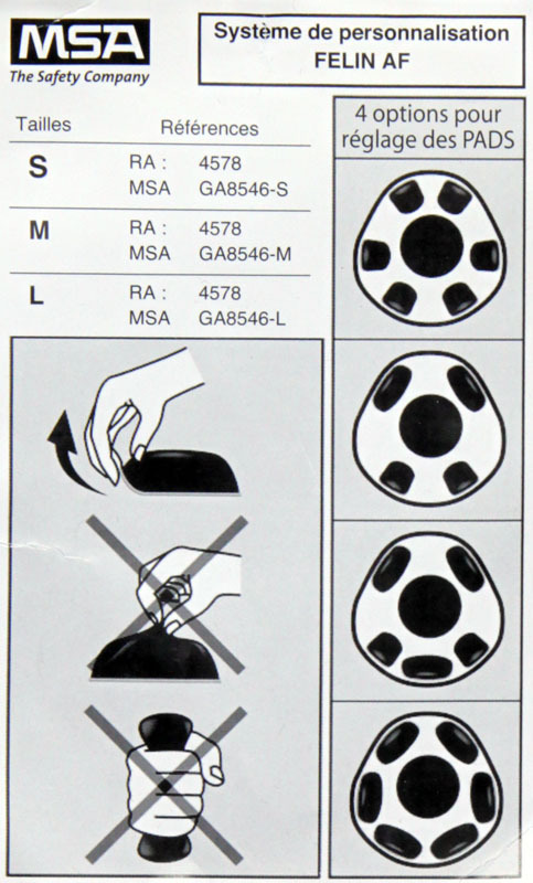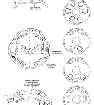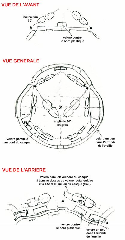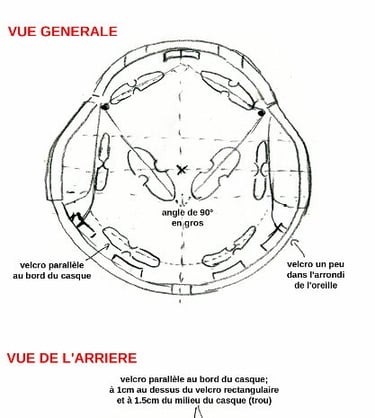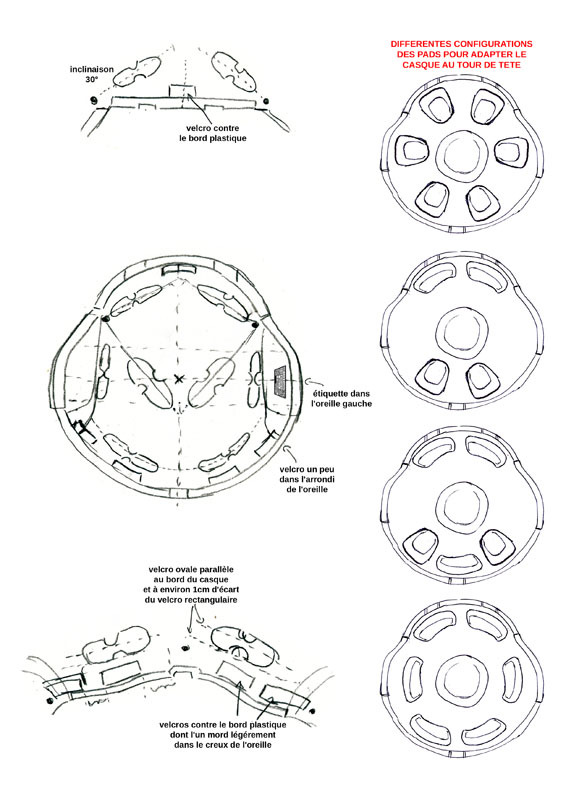 Du coup je me suis dit que je mettrais bien une feuille A4 avec le positionnement des velcros, de l'étiquette et les différentes configurations des pads pour adapter le casque au tour de tête moi-aussi.