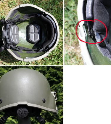 Par contre, le système Ops-Core standard (celui que l'on voit sur tous les FAST et autres), avec sa mousse frontale, n'est pas comptaible. Les trous à l'avant sont décalés. Peut-être qu'en découpant la mousse frontale, on récupérerait assez de jeu, je ne sais pas. Ici c'est un vrai modèle Ops-Core pour Mich/ACH.