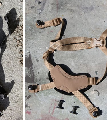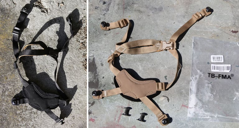 De gauche à droite donc, harnais en X FMA noir, celui qui suit le plus amha, harnais en X FMA coyote (celui-là suit mieux avec les impressions 3D laissé en couleur naturel (kaki) et harnais en H noir (celui d'origine de la repro du mich).