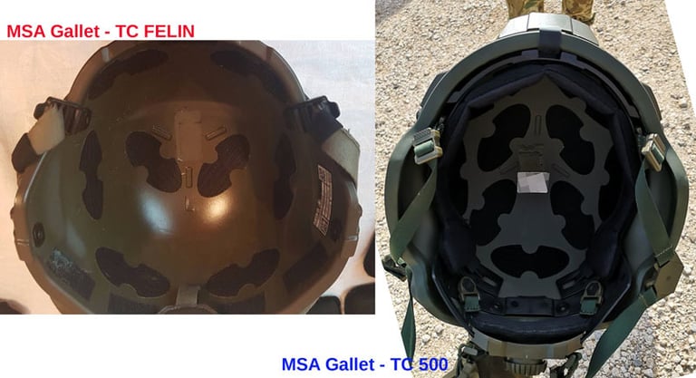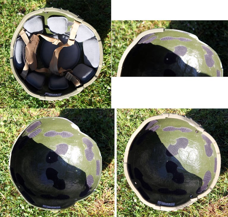 Dessous, j'ai les systèmes Ops-Core. Alors ici la version FMA version Lux Liner. La coque interne ne rentre pas du à la différence de forme, il faudrait la couper pour la réduire en longueur. Mais le système de serrage par molette s'adapte très bien.