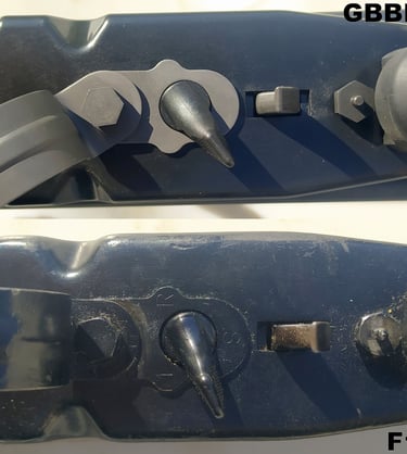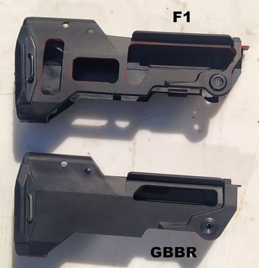 Par contre, bien sur, la PGM du GBBR est bien plus proche d'aspect avec les GPM plastique du F1 vu qu'ils sont de même conception: du plastique injecté.