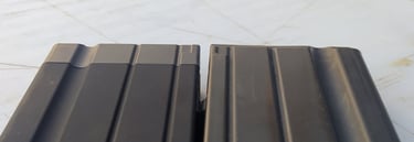 Les rainures sont identiques à celles d'un AEG et manquent de douceur sur les bords (le rayon du chanfrein est trop faible, du coups les rainures paraissent beaucoup plus fines que sur le vrai chargeur).