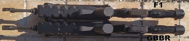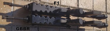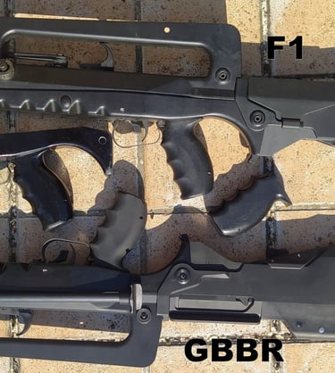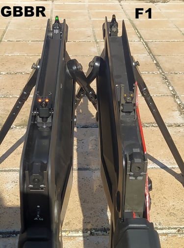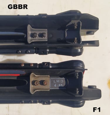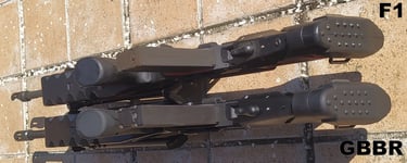 Enfin le bas de la semelle du bipied a une forme "pentagonale" sur le GBBR alors que le bipied du F1 est parfaitement plat. Aucune idée si cette forme est fantaisiste ou pas.