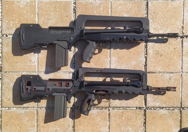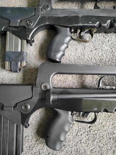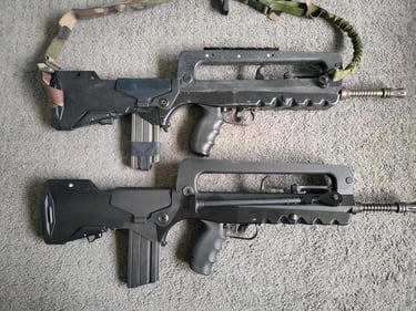 Un comparatif visuel du Famas GBBR NorthEast Gunpoint avec un vrai Famas F1 (didactique de 1983) histoire de bien voir les différences; parce que c'est un beau jouet, une belle reproduction qui mérite d'avoir un comparatif avec un F1 original tant il est fidèle en poids, en équilibre et surtout en dimensions par rapport aux versions AEG.