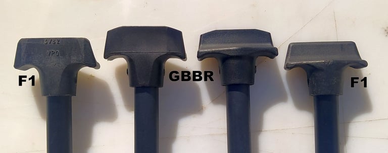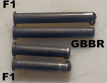 Elles sont un peu "simplifiées" sur le GBBR. La tête est plus épaisses et l'extrémité n'est pas sphérique comme celles du F1. Du coup sur le F1 elles paraissent plus longues, mais sans incidence sur la taille "utile" de la goupille.