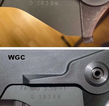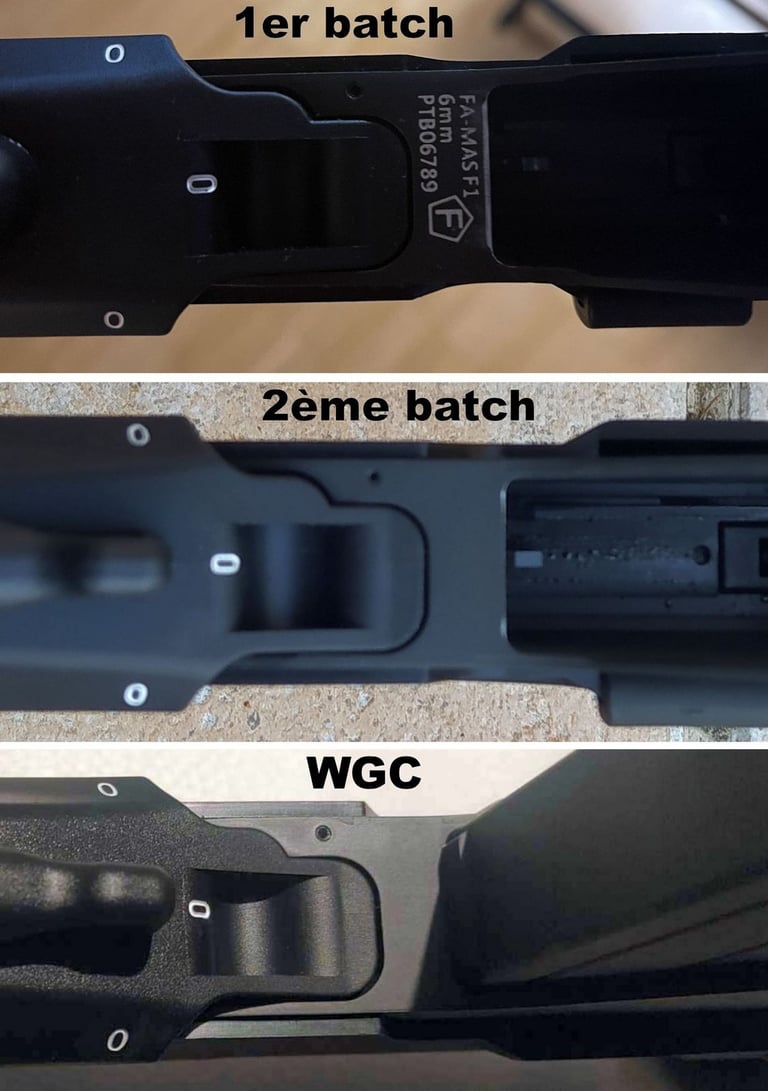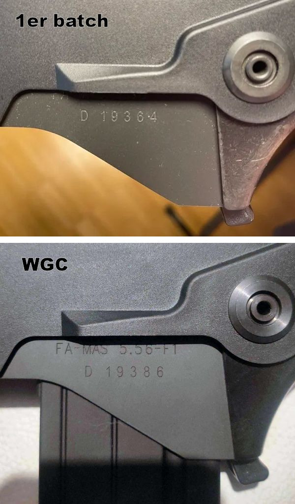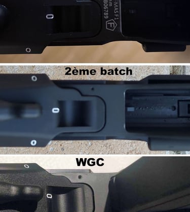 Sur le 1er batch toujours, il y a un marquage entre le puit de chargeur et le boitier de mécanismes qui n'est pas présent sur le 2nd batch ni sur le modèle WGC.