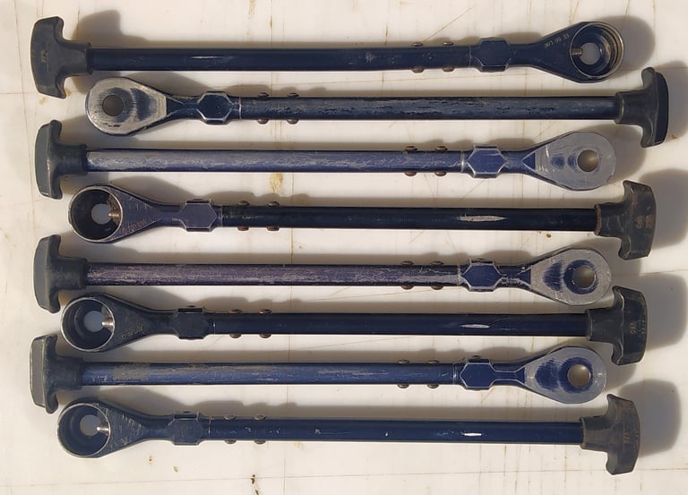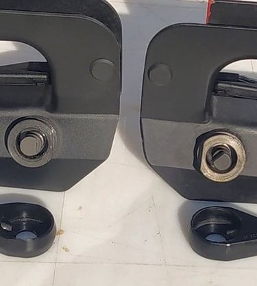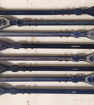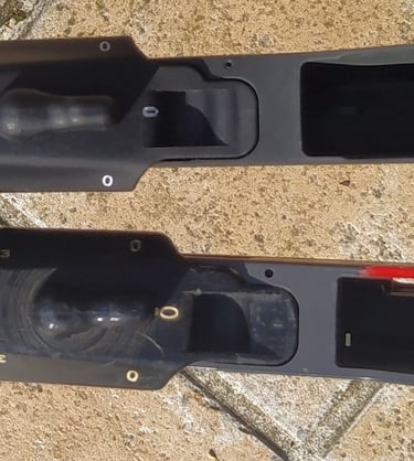 Voici un lot de bipied de F1 qui ont du vécu. Vous noterez plusieurs détails: en s'usant, on se retrouve avec une couche bleu/violet. Le noir d'origine tire donc sur le bleu/violet.