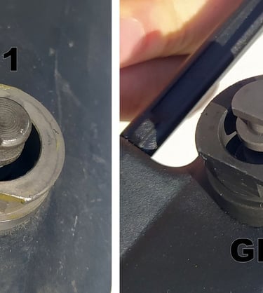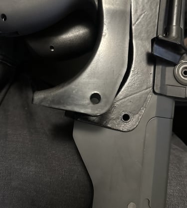 La zone d'insertion de la PGM sur la crosse est bien plus rigide sur le GBBR que sur le F1. Et avec ses angles saillants, ça gène l'insertion des vraies PGM. Du coup, mieux vaut prendre l'habitude d'installer la PGM avant la crosse pour se faciliter le remontage.