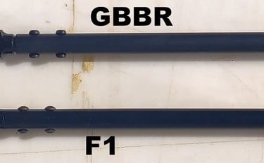 La partie "tube" fait 21.5mm de diamètre sur le GBBR contre 22.5mm sur le F1. Bref il est un poil moins gros.