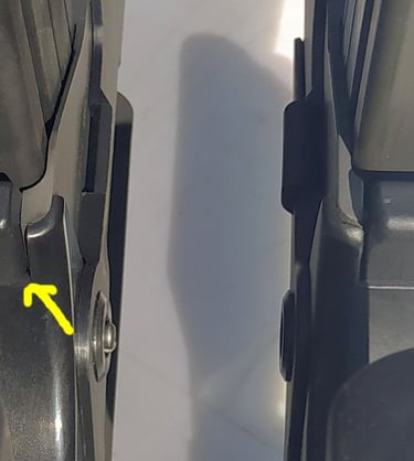 Quand au coulisseau à l'avant, il n'est pas vissé comme sur l'original, c'est une sort de goupille à la place (sans empreinte de tournevis, juste un trou). Et cette tête de goupille est "argentée brillante".