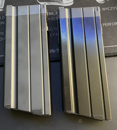 La couleur est noire d'aspect mat, aussi le chargeur d'AEG se retrouve plus réaliste d'aspect et de couleur. C'est dommage de ne pas avoir repris la couleur de la partie plastique sur la partie métal, c'eusse était parfait à mon gout.