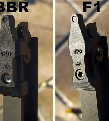 L'alidade de tir vertical (pour le tir courbe/ parabolique de grenade à fusil) a des marquages plus fin sur le F1. Sinon c'est vraiment propre avec une bonne tension du ressort (celui qui fait le crantage pour maintenir en position quand on pivote l'alidade sur le coté).