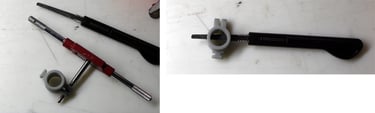 Notez aussi que le trou doit faire 6mm grand max car la goupille fait 5.8-5.9mm de diamètre. Si vous utilisez une perceuse à colonne, vous pouvez percer avec un forêt de 6, mais si vous percez à la main, il faudra prendre un forêt de 5.8 mais pas 6. Le jeu que vous allez faire sera trop grand sinon. Et si la goupille ne rentre pas, n'oubliez pas que c'est du plastique. Poncez un peu jusqu'à ce qu'elle passe, mais ne repercez pas, c'est préférable amha. En tout cas c'est comme ça que je ferais personnellement.
