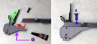 La pièce arrière a un écrou enfoncé à l'intérieur. Pensez à le coller, comme les autres écrous ou j'ai fait leur empreinte sur la réplique. Il resteront, vous éviterez de les perdre et ce sera moins galère au montage.