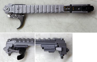 J'ai regroupé les pièces en noir (Cyber ou Marui) puis pour le reste, en gris, un ensemble droitier ou gaucher et un ensemble Cyber ou Marui encore.
