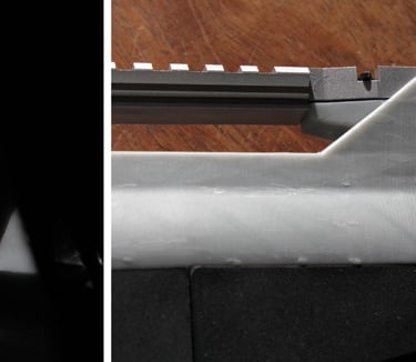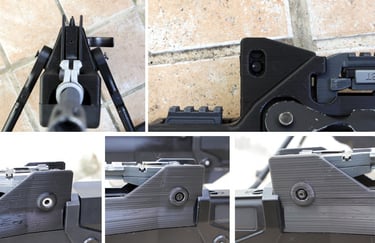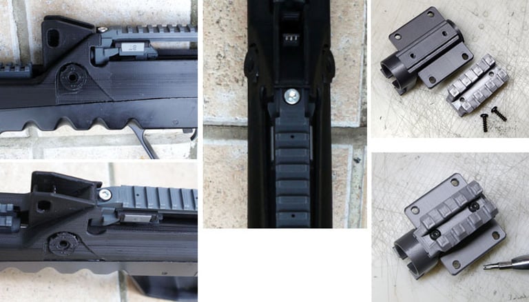 Le sous-rail est solidaire du grand rail. Il n'est pas en 2 partie comme l'original et n'est donc pas vissé par le dessous. Les trous sur le haut coté dentition Picatinny sont donc factices, juste pour le "réalisme".