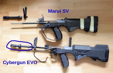 Donc l'outil de découpe et la hausse lance-grenade seront spécifique à Marui et à Cybergun.