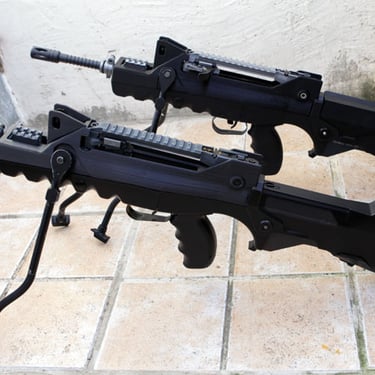 J'ai repris les marquages vu sur une photo du proto de Cybergun. Ça a l'air de coller avec les photos flous du vrai. Après on s'en cale un peu, ça reste crédible.