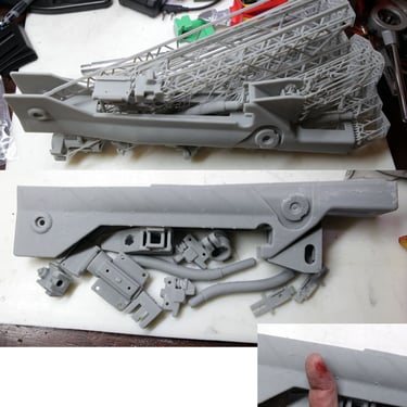 J'ai aussi fait imprimer un kit en résine. Pas de choix de couleur. Avec support à retirer soi-même (sinon ça coute beaucoup trop cher). Ne faites pas comme moi, pensez à mettre des gants, ça pique et ça griffe ces supports qui finissent en pointe.