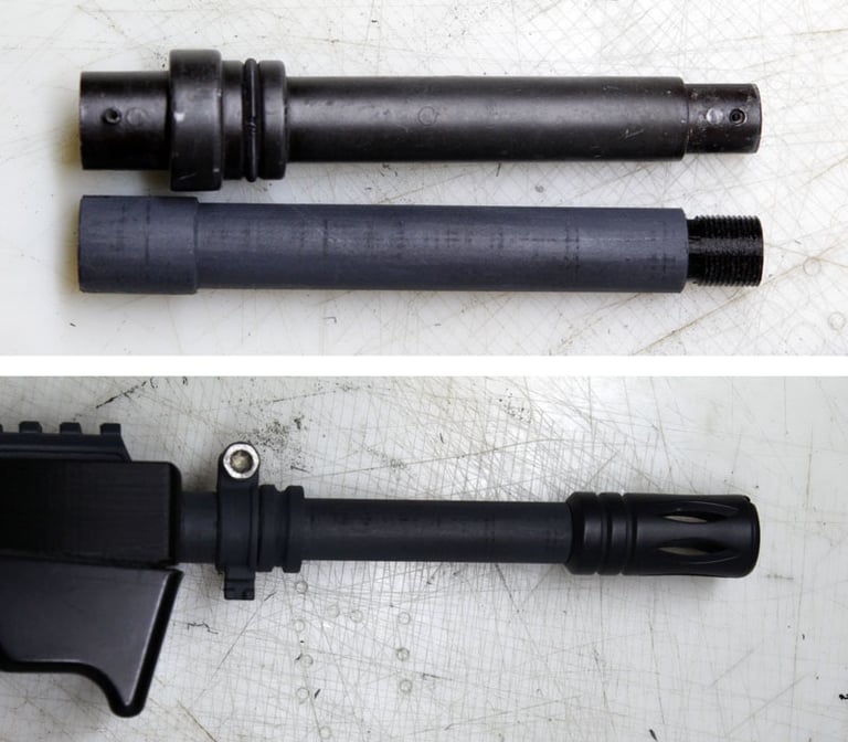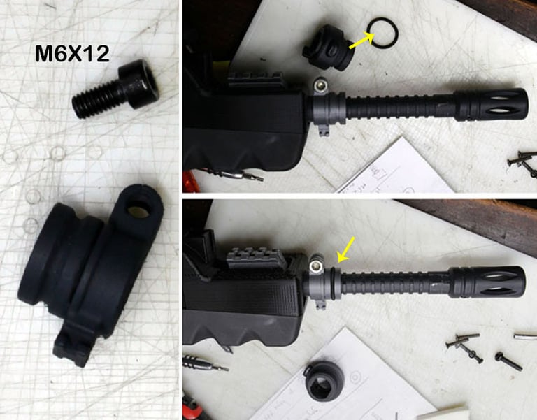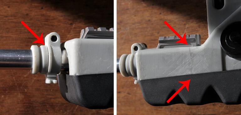 NB: ici la bague lance-grenade est un peu trop loin. J'avais agrandi exprès pour avoir de la place pour retirer le garde-main bas sans soucis, mais là c'est too much.