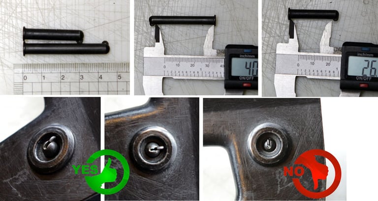 NB: si vous voulez les mettre sur le Famas F1, il faudra creuser la PGM pour que la "boucle ressort" puisse dépasser. Entre les 2 faces de la PGM, on doit avoir 26mm, l'écart entre la tête et la "boucle ressort" de la goupille. Sinon, la goupille ne sera pas sécurisé et pourrait tomber. A priori c'est arrivé à plein de monde.