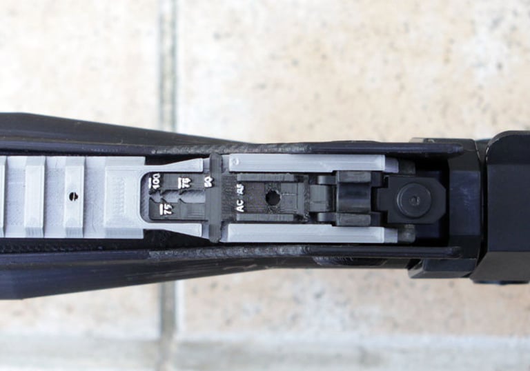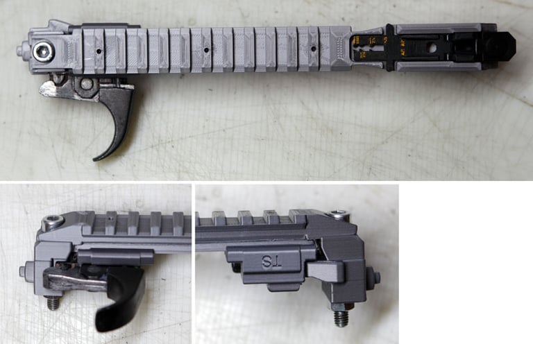 L'ensemble monté sur la réplique (impression MJF et rails alu):