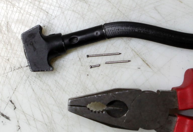 Il faudra aussi découper la longue goupille. Car pour le Valo, elle ne doit pas dépasser du porte-œilletons.