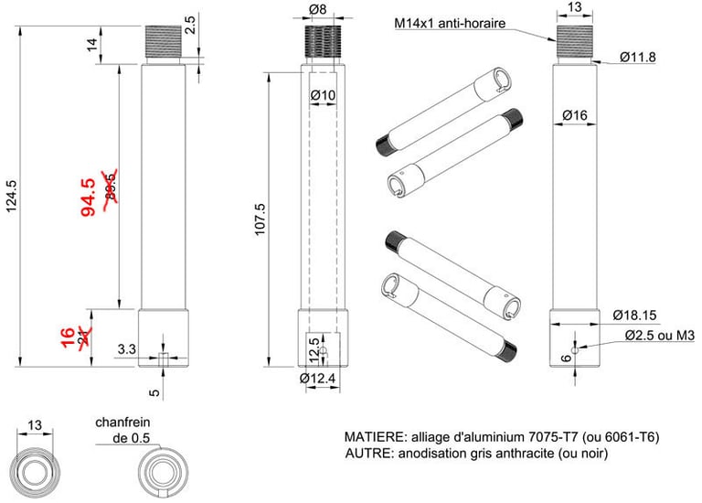 Donc si vous voulez aussi avoir un canon lisse, j'ai modélisé une extension à faire usiner par un tourneur fraiseur.